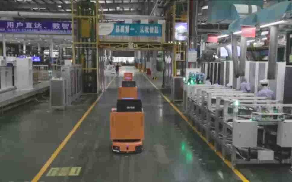 为车载冰箱物流配送打造的智能解决方案,,包含产中物流通过潜伏举升AMR搬运至线边,,,,产后成品物流智能仓储,,,,流程包含产中物流智能齐套入库,,线边安灯叫料AMR智能配送至线边,,成品入库、、、出库,,通过无人堆高车机器人,,,智能仓储管理替代人工作业管理,,实现更高存储、、更高效率、、、更具柔性化的解决方案。。